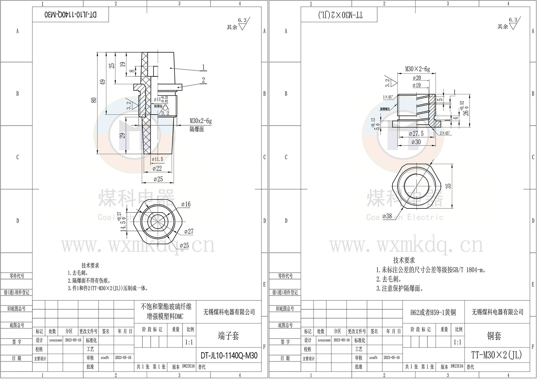 ◆ 安裝尺寸:M30x2 隔爆螺紋 ;
